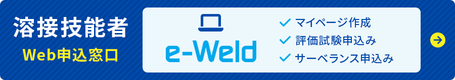 当協会または日本溶接協会のWEBサイトバナーリンクからe-Weldにアクセスのうえマイページを作成してください。